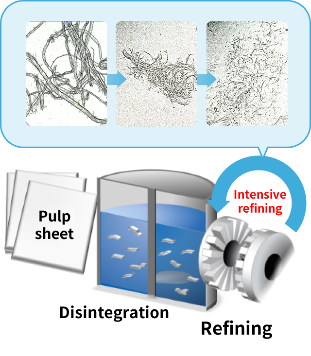 Wet mechanical defibration allows cellulose to be adjusted to various sizes.